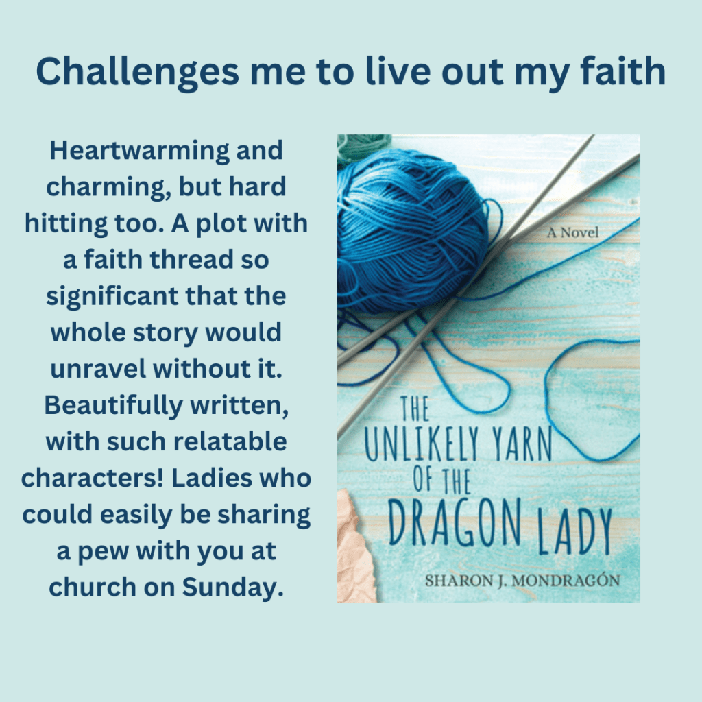 Two of the books you chose here also touched me (and convicted me a bit!) were The Extraordinary Deaths of Mrs. Kip & The Unlikely Yarn of the Dragon Lady. They challenged me to live out my life more boldly for Christ & be His hands and feet. I still don’t do it perfectly (probably never will) but those lessons stick with me.